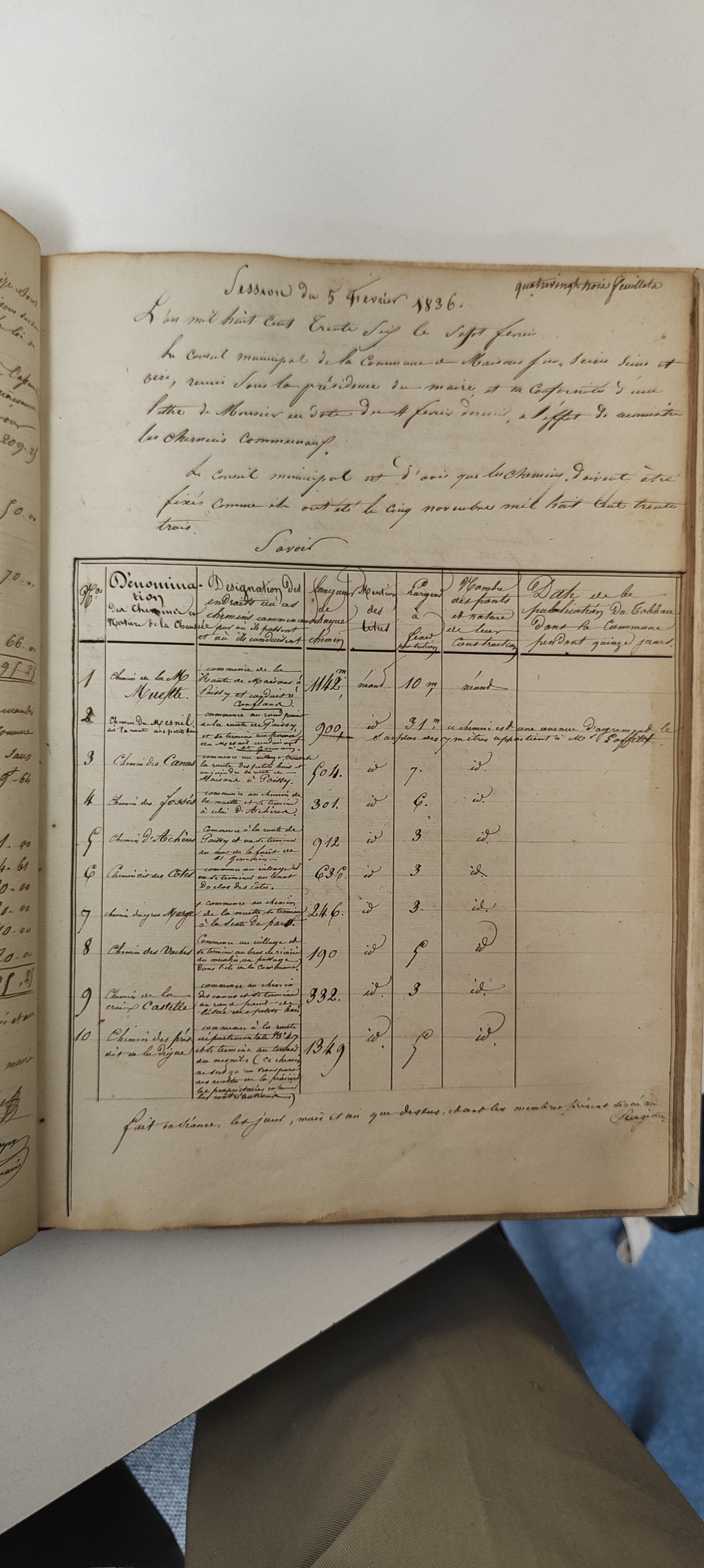 Ville Urbanisme 1836 _ _ Noms donnés aux chemins