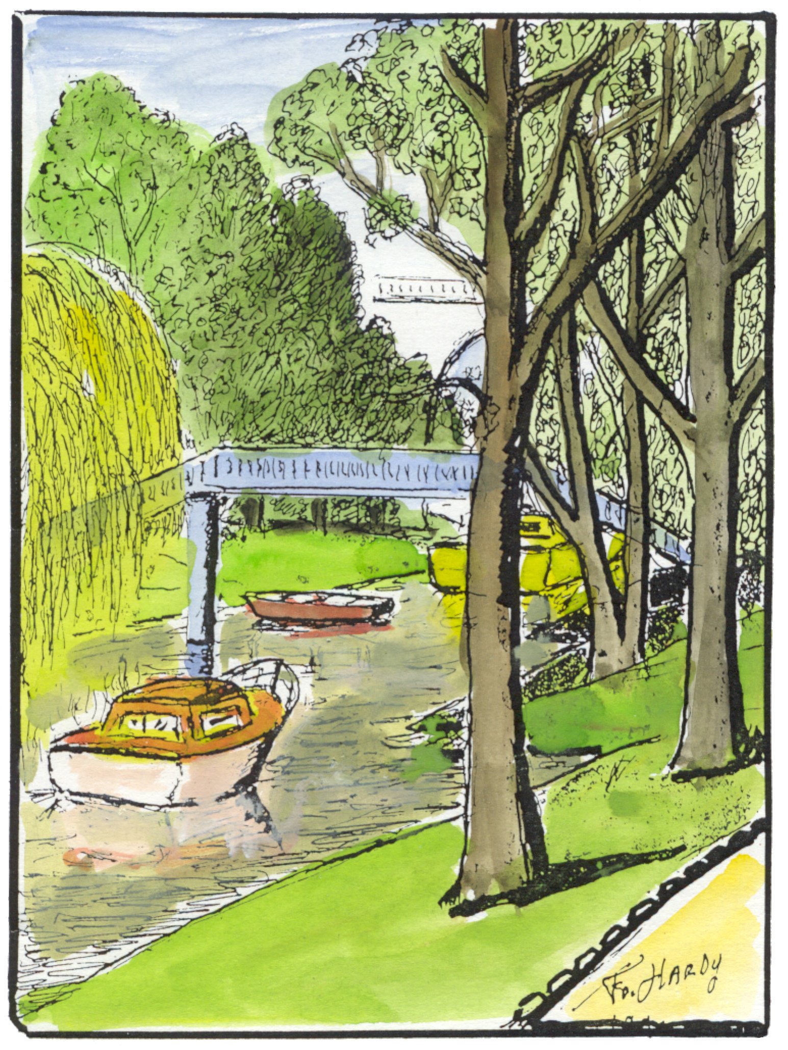 Ile Agricole 1910 C Lutz /Ile pacuage -03.jpg" Vaches et canot.Colorisé